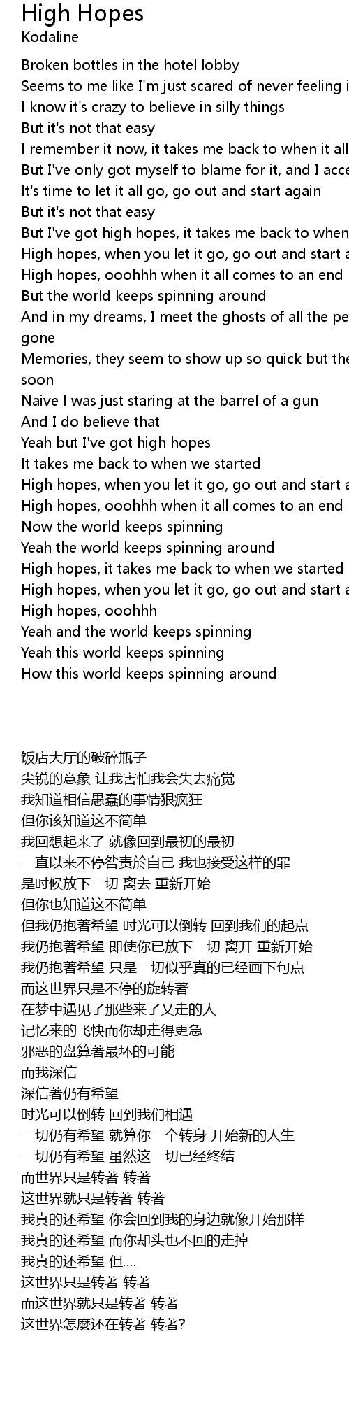 High hopes lyricist